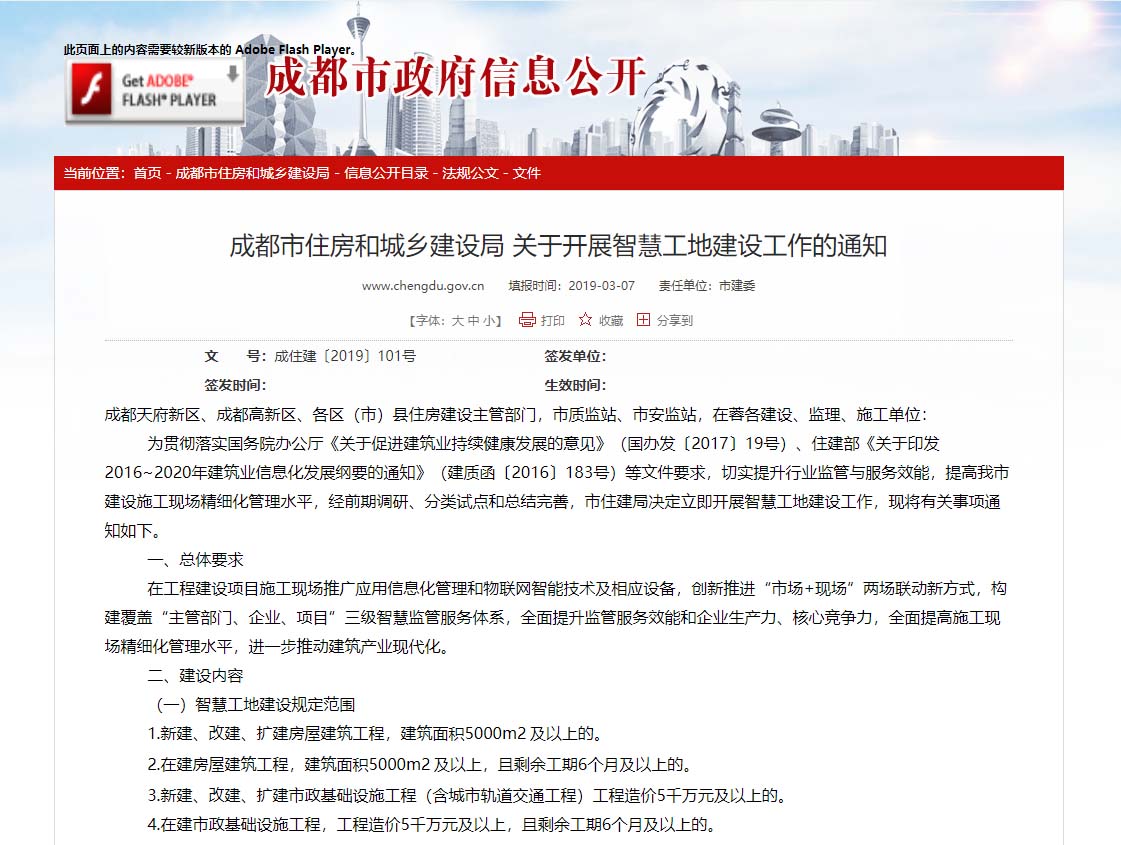 成都市住房和城鄉(xiāng)建設(shè)局發(fā)布關(guān)于智慧工地建...