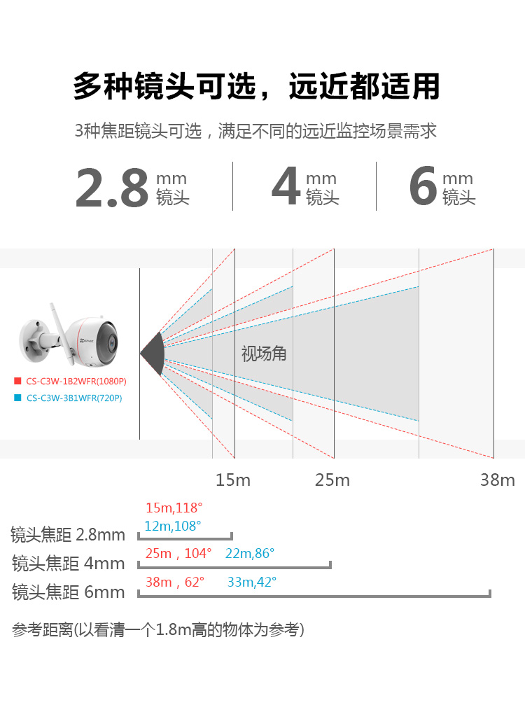6mm@ F2.0, 水平視場角:54°,對角62°